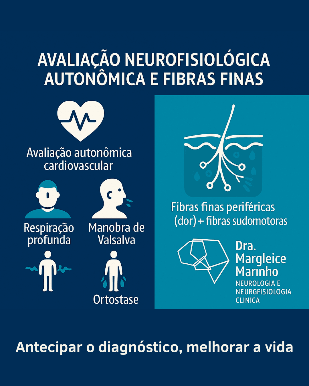 Investiga o funcionamento do sistema nervoso autônomo e das fibras nervosas finas, responsáveis por funções como controle da sudorese, pressão arterial e dor crônica. Útil em casos de neuropatia autonômica ou dor neuropática de difícil explicação.